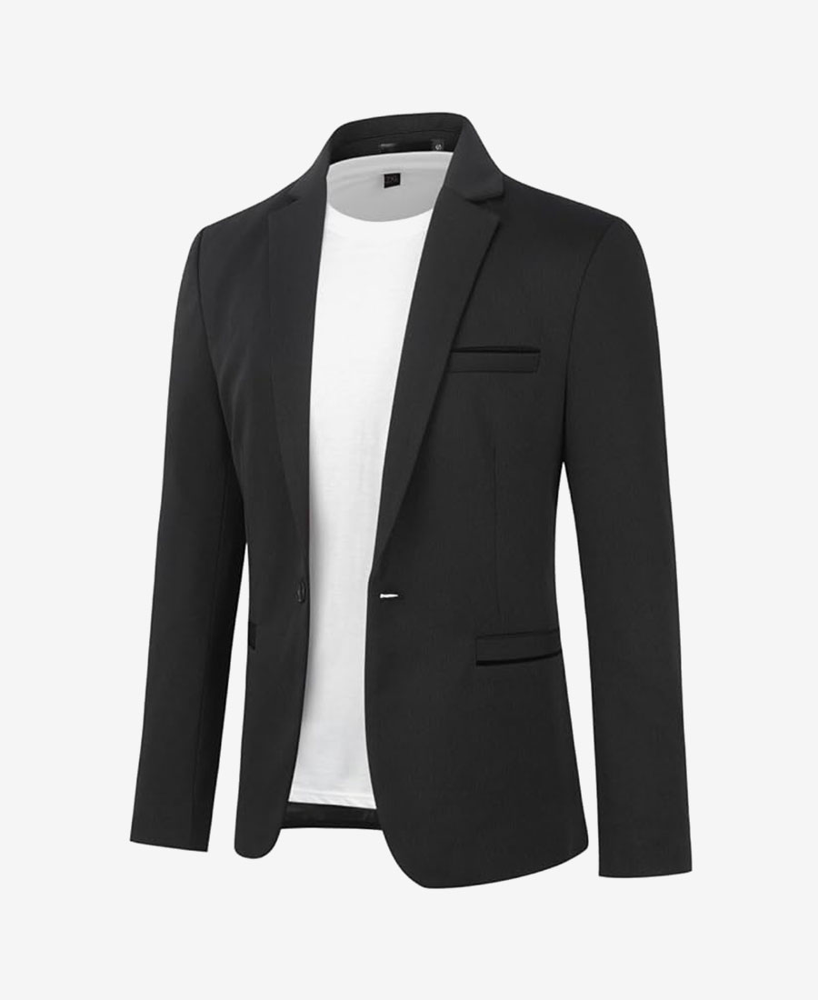 The black blazer complements the design and gives it an eye-catching look. Also, you can pair it with any shirt and formal and casual pants. This black blazer is an alternative choice in men’s suits when you want something more formal and bold.